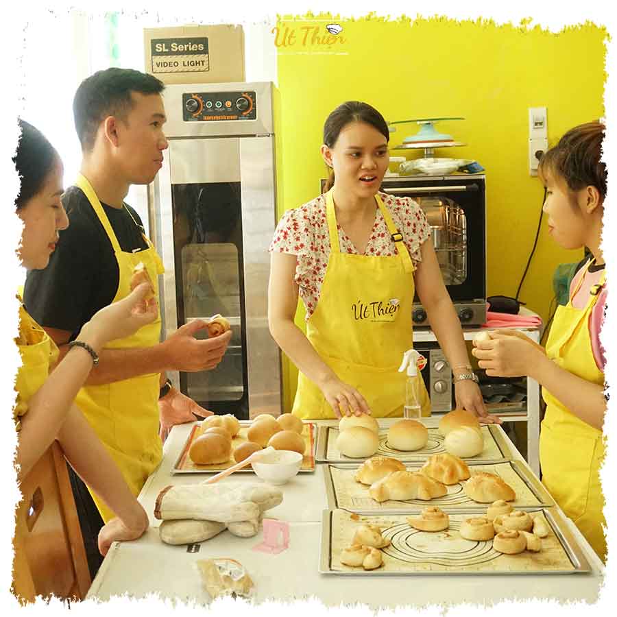 – Thực hành 100%, hướng dẫn để học viên nắm vững về bản chất của bánh Mì, sau đó tự biến tấu ra nhiều mẫu mã.